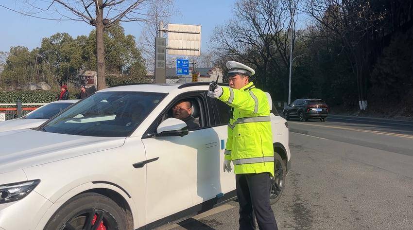 早上9:30,交警为搭客耐性指引。(武当融媒记者 李秀文 摄)