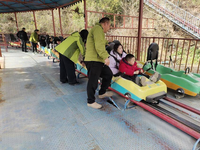 武当山风景谷网红口头森林飞车很受迎接,责任主谈主员为搭客西席注重事项。(通信员 舒明镜 摄)