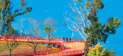 结合山、水、林、田、湖、草、村等不同的风物特色,滇池绿谈上用心打造了多座特色栈桥。这些栈桥不仅便利交通,也成了滇池中的亮丽风物。