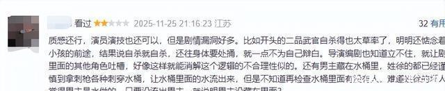 不外,也有不雅众指出剧情有残障,存在槽点,演员演技差等。