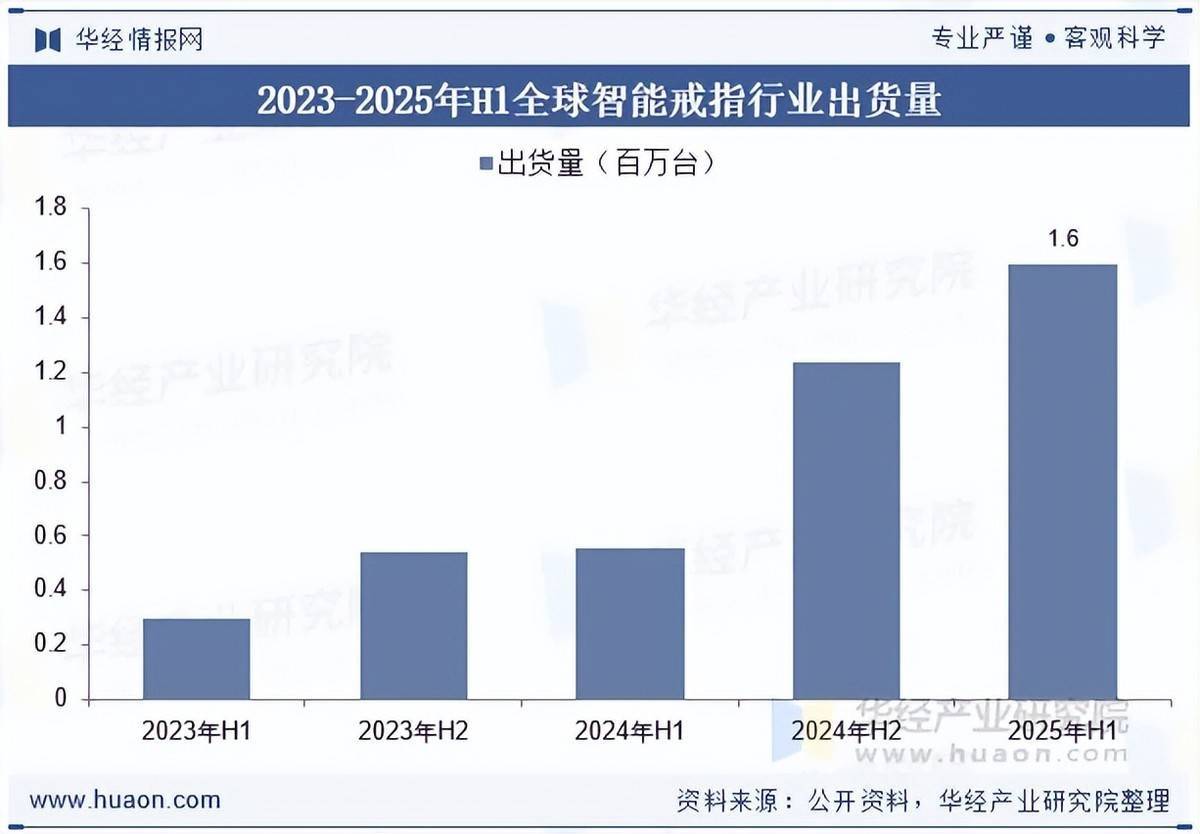 2025年H1全球智能限制行业出货量约1.6百万台。这一数据背后,是健康监测功能的深度浸透与奢靡需求的执续开释,医疗级智能限制凭借精确的生理见地监测才能成为增长主力。线上电商渠谈的爆发式增长与线下体验店的场景化布局,进一步鼓吹智能限制从小众单品走向大家奢靡商场。